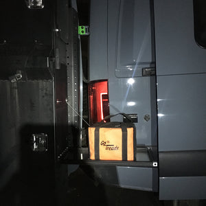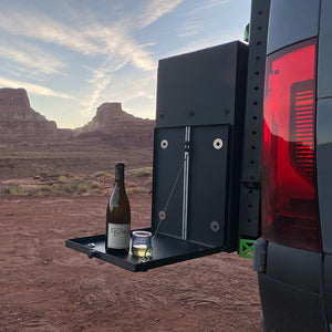 Universal Folding Table. Attach to exterior boxes for additional prep or lounge space.