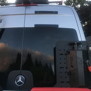 Attachment panel for Revel ladder hook replacement. Space utilization for Rotopax, etc. Modular panel design.